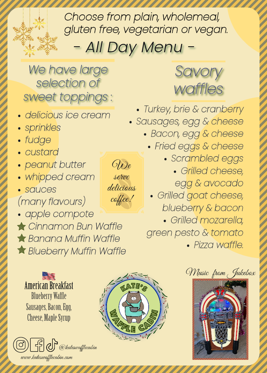 Kate's Waffle Cabin Menu