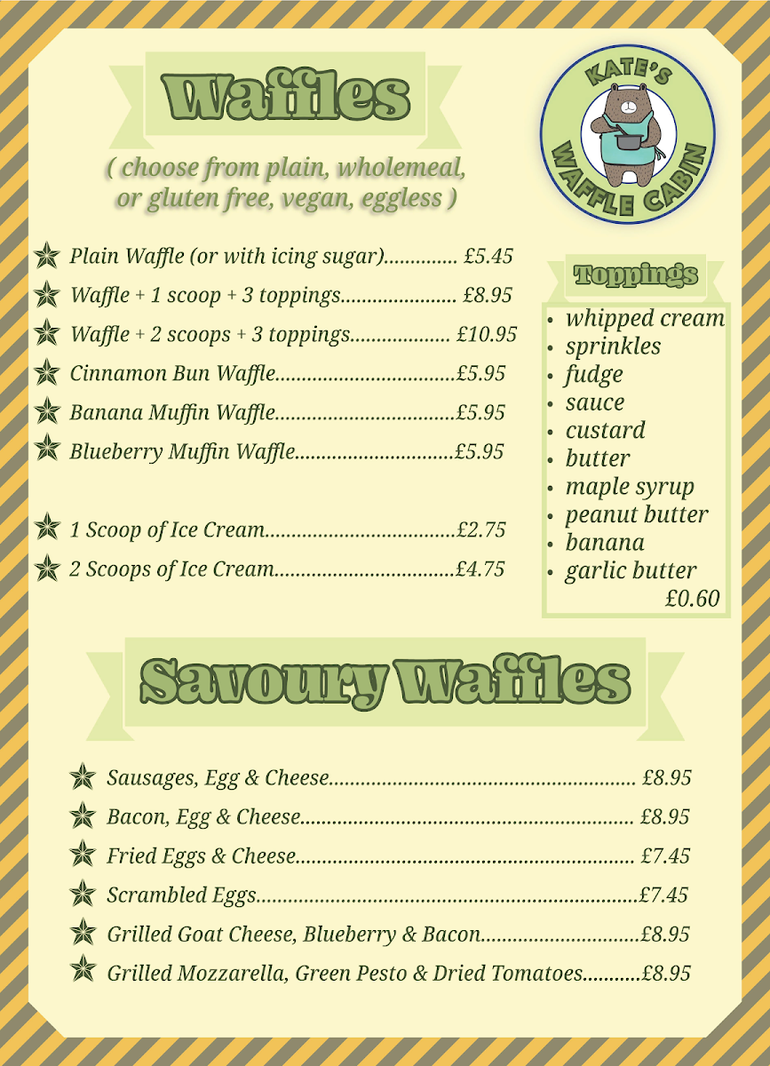 Introducing the Menu at Kate's Waffle Cabin